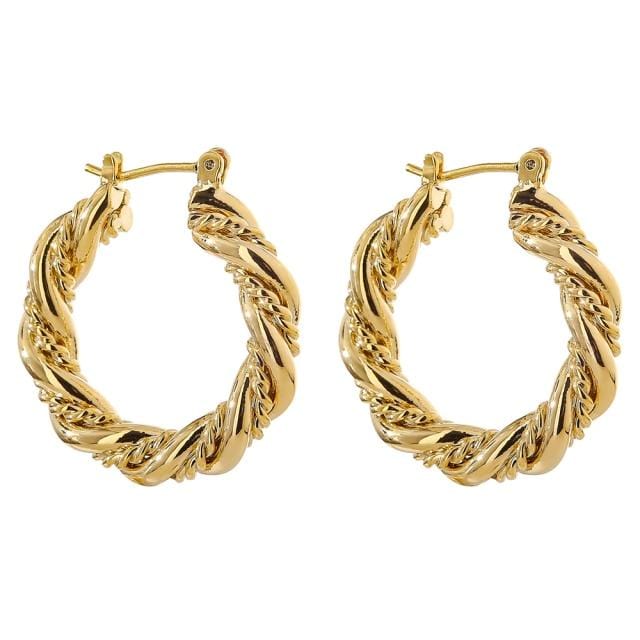 Yhpup Trendy Twist Chain Metal Hoop Earrings Minimalist Copper Texture Round Earrings for Women Bijoux Femme Gift Office Gift