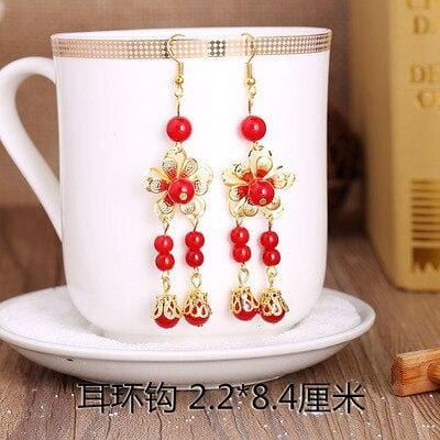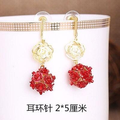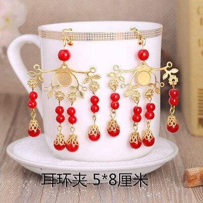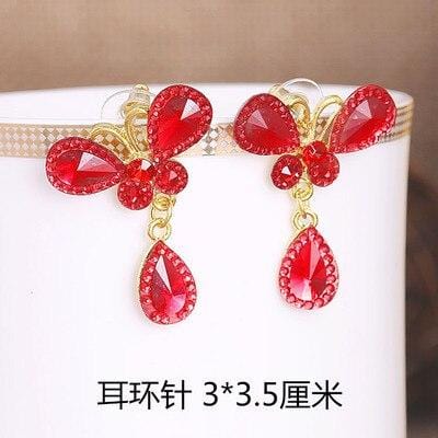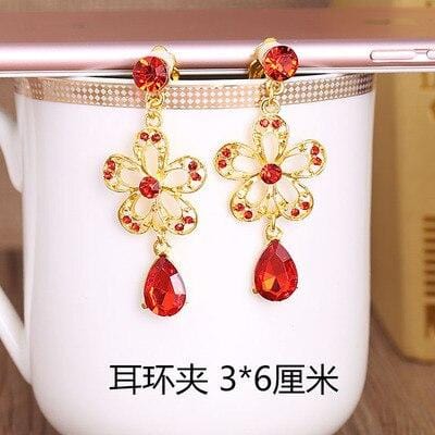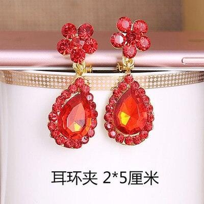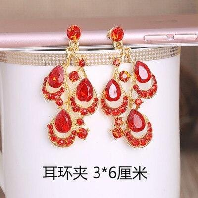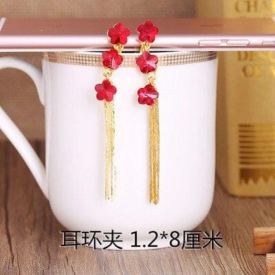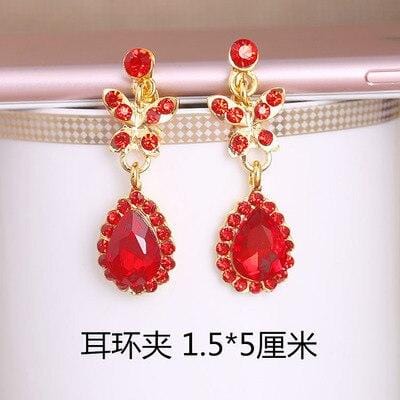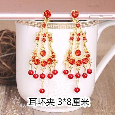 Yhpup Vintage Inlay Rhinestone Red Black Crystal Tassel earrings wholesale 2Pair Girl Jewelry Earring Ear clip