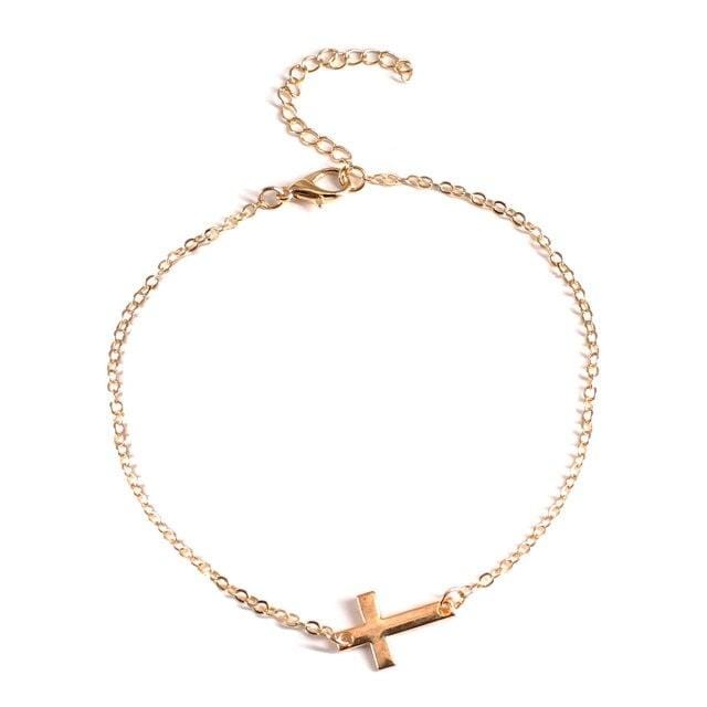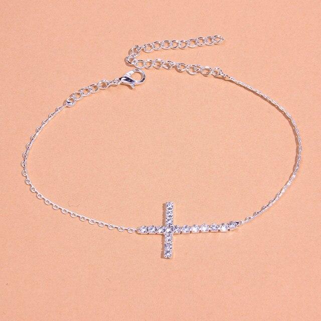 2021 Bohemian Simple Luxury Rhinestone Cross Anklet For Women Beach Foot Jewelry Leg Chain Ankle Bracelets Female Accessories