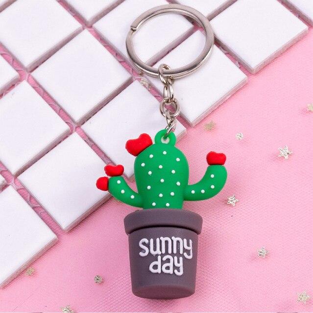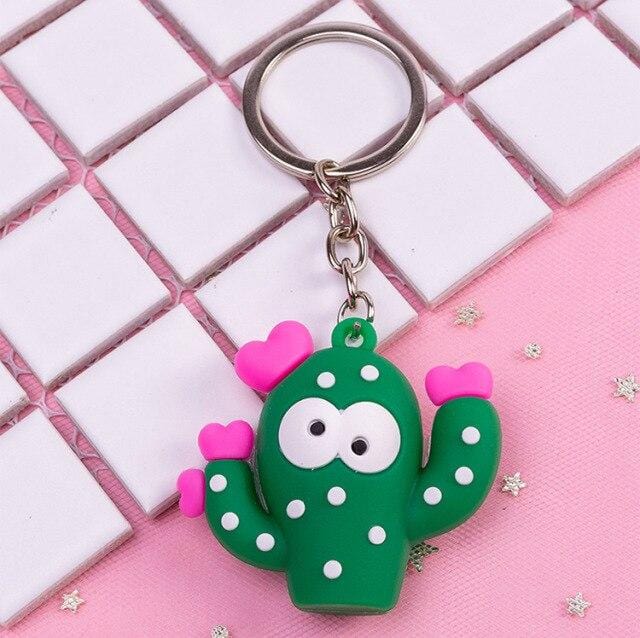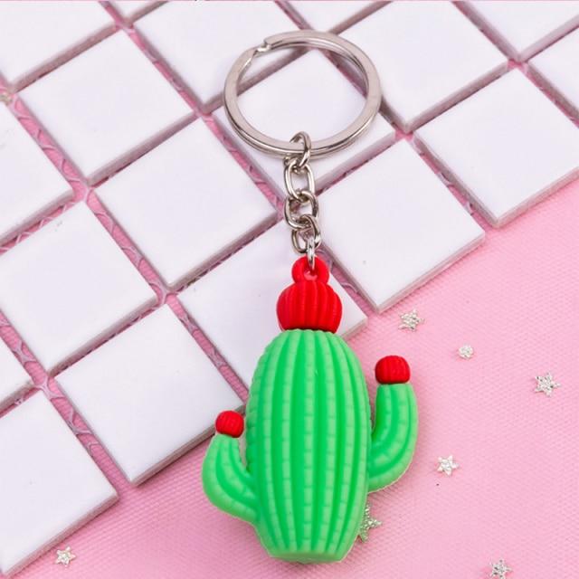 3D Cactus Keychain Couples Key Chain Ring for Women Bag Girl Phone Car Keyring Lovers Jewelry Gifts