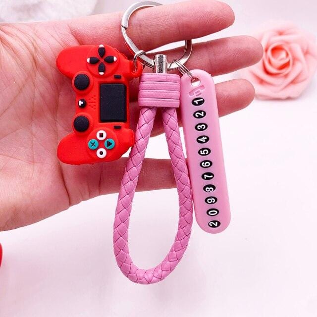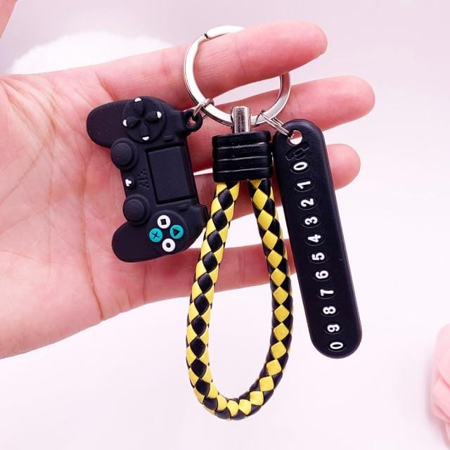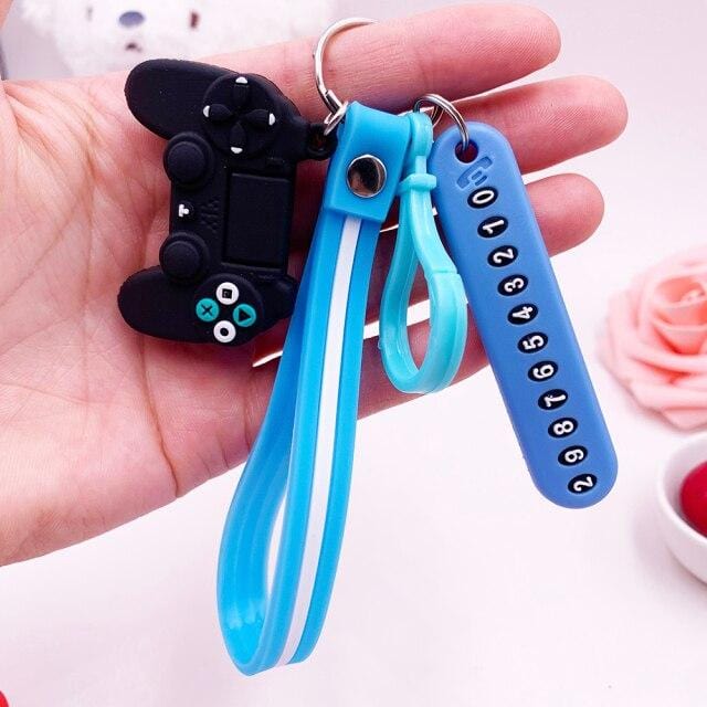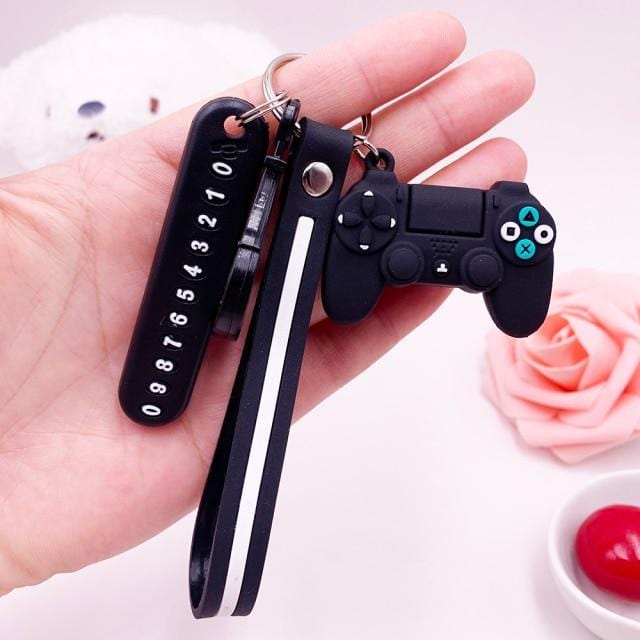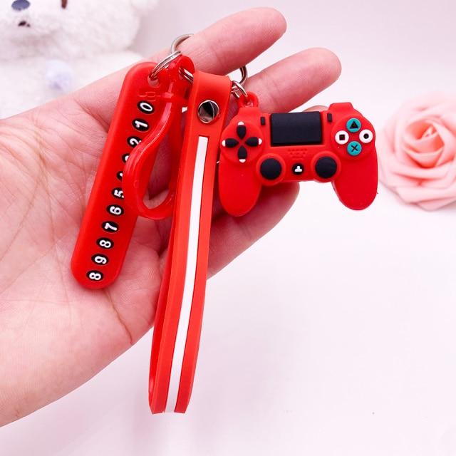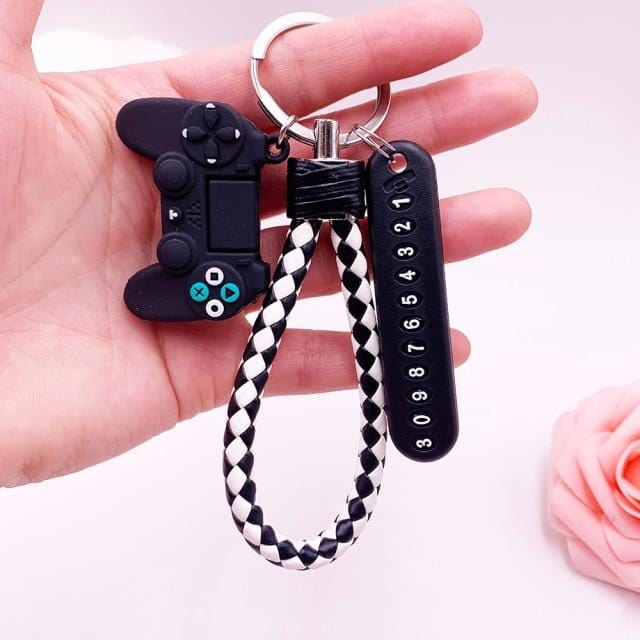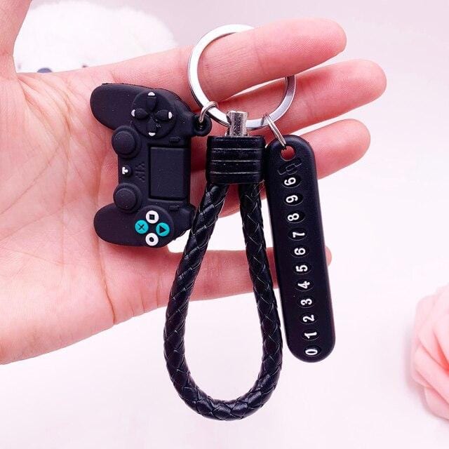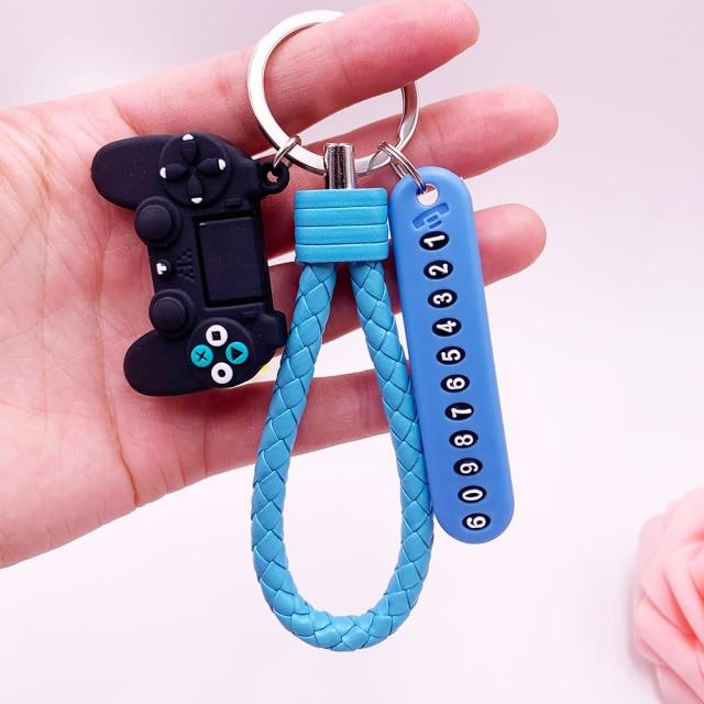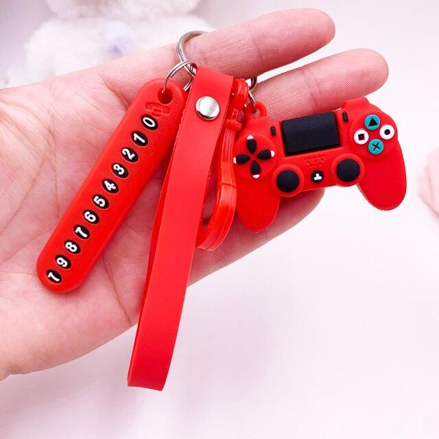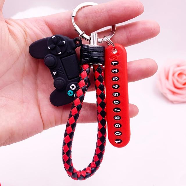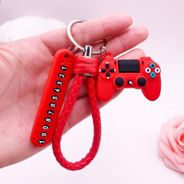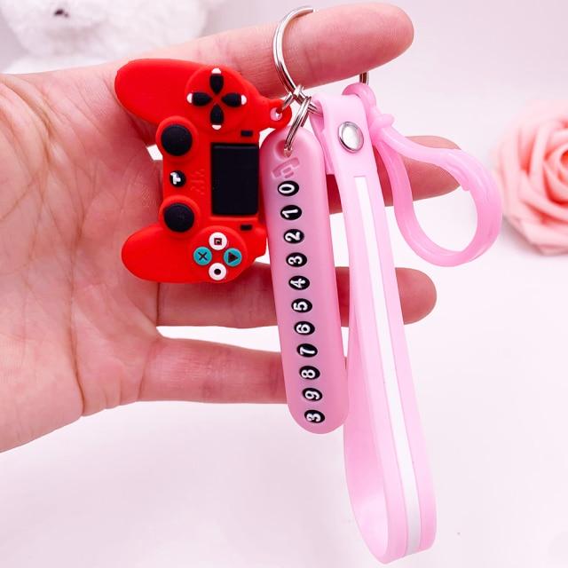 Anti-lost Car Phone Number Card Keychain Video Game Handle Simulation Joystick Model Key Holder Ring Men Women Trinket Gift