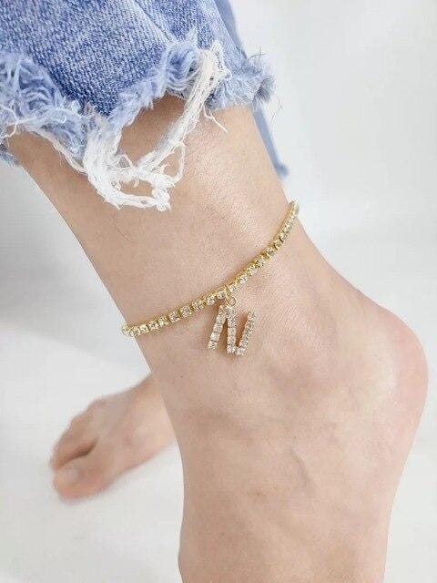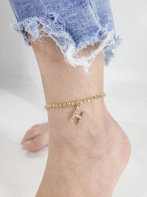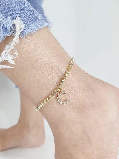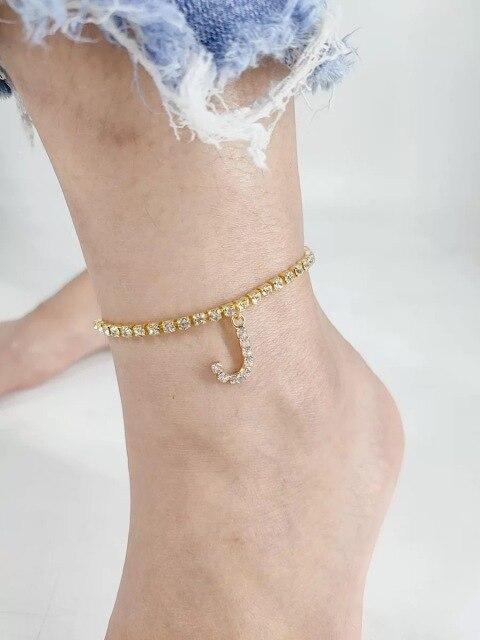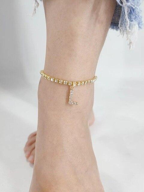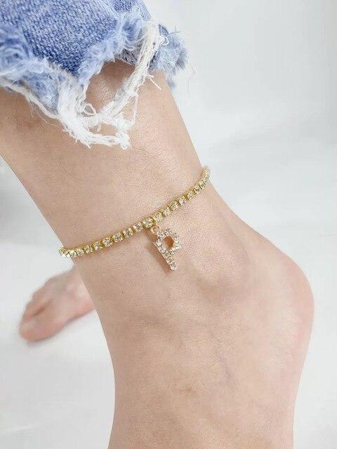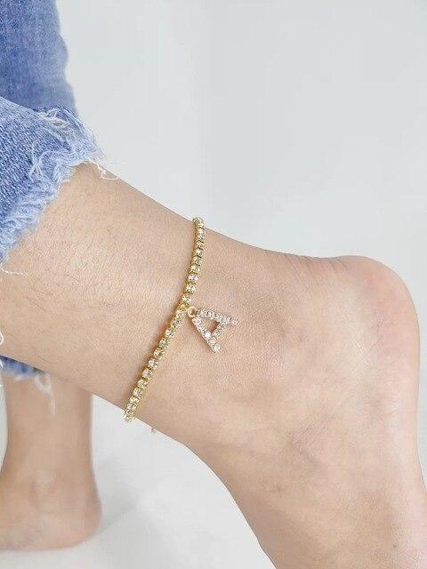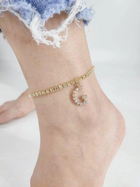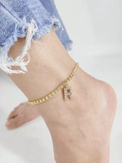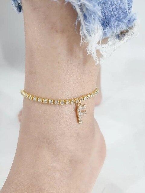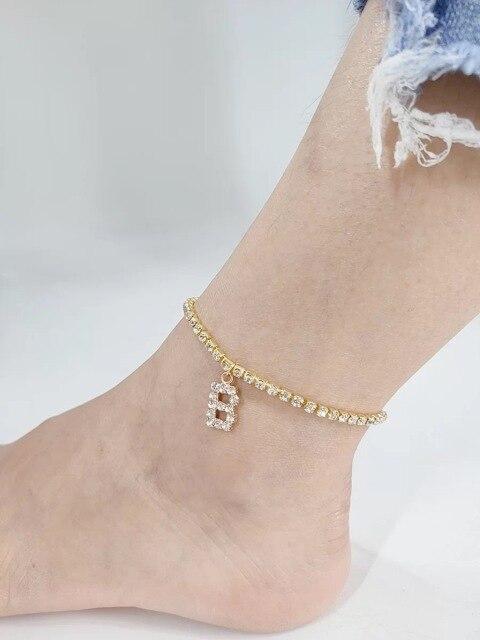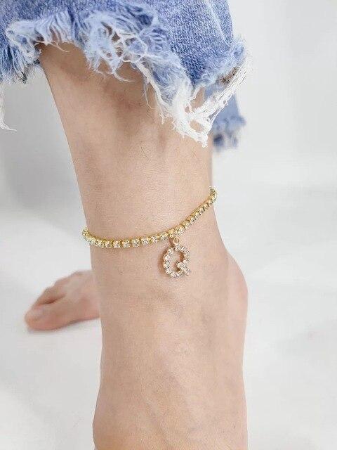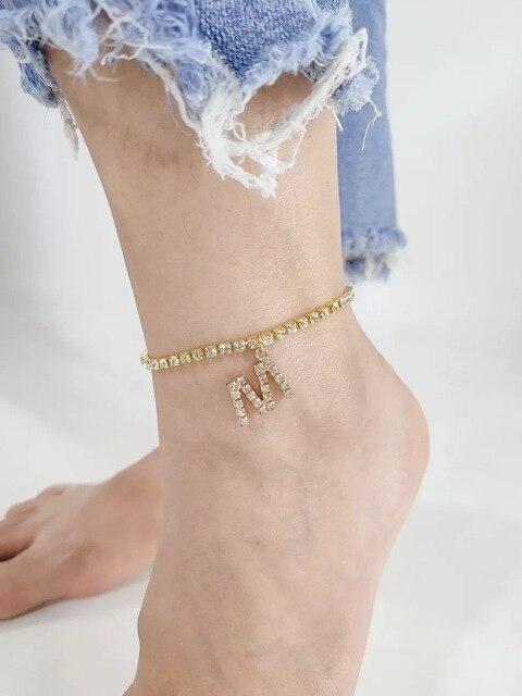 Crystal Zircon Tiny A-Z Initial Letter Ankle Bracelet Alphabet Anklets for Women Foot Chain Beach Leg Bracelets Boho Jewelry