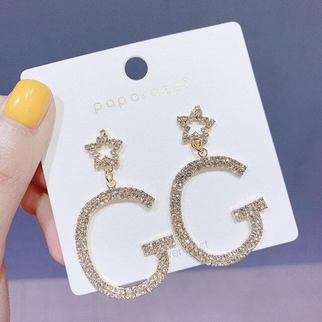 Fashion Brand Crystal Letter G Star Drop Earrings Precision Inlay Gold Rhinestone Earrings for Women Wedding Jewelry