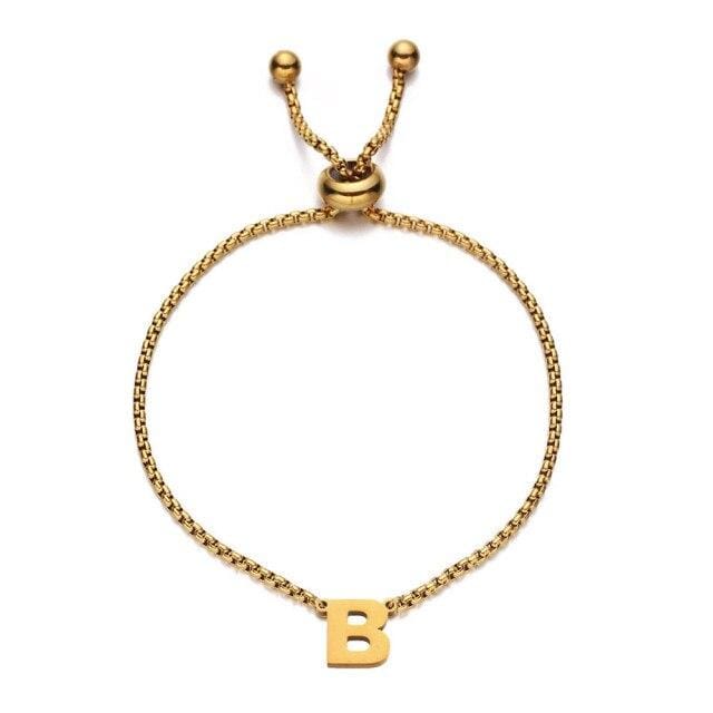 High Quality 26 Alphabet Initial Letter Bracelets for Women Adjustable Stainless Steel Gold Chain Charm Name Jewelry Birth Gift