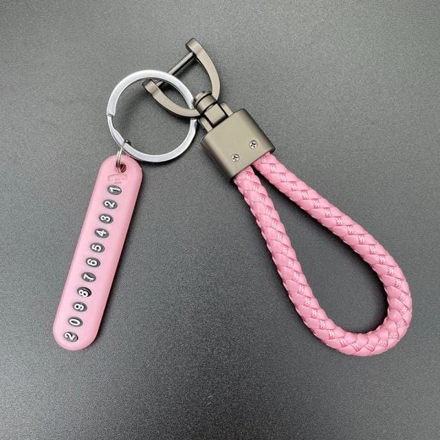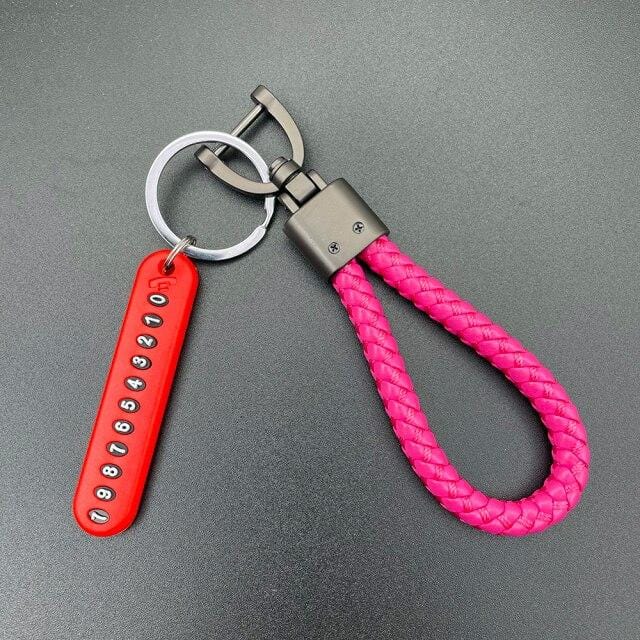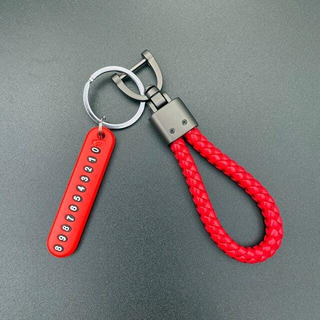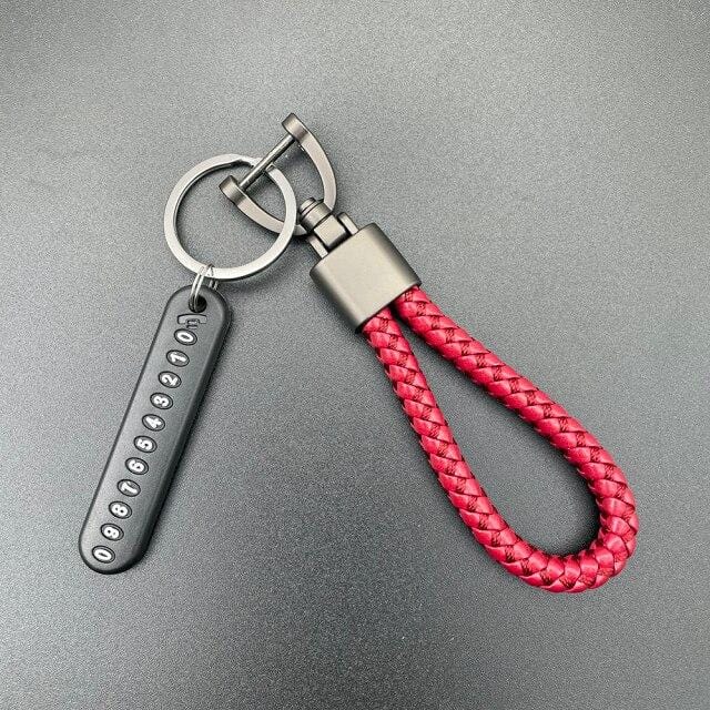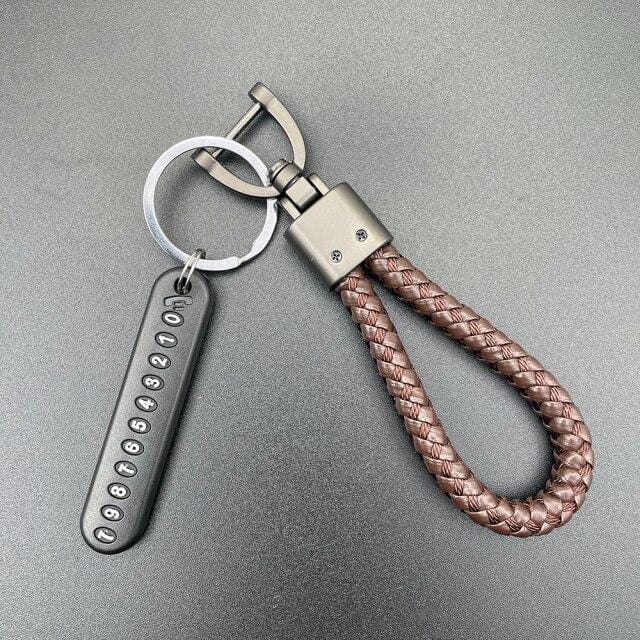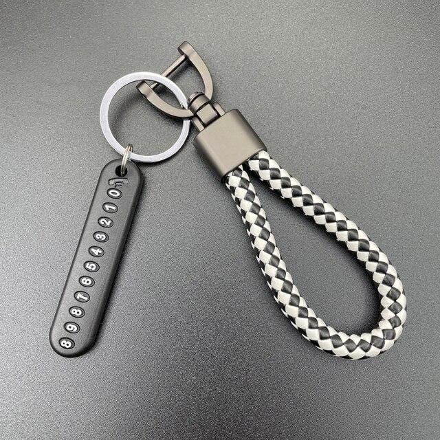 High Quality Anti-lost Woven Leather Car KeyChains Phone Number Card Key Ring Rotating Horseshoe Buckle For Women Men New Gifts