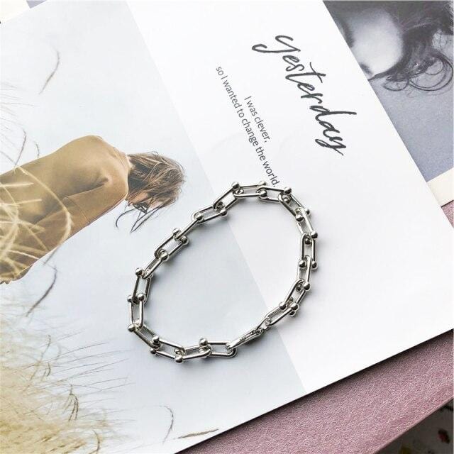 Ins New U Shape Metal Chain Bracelets for Women Men Hip hop Jewelry Fashion Gold/Silver Color Bracelet Gift 2020