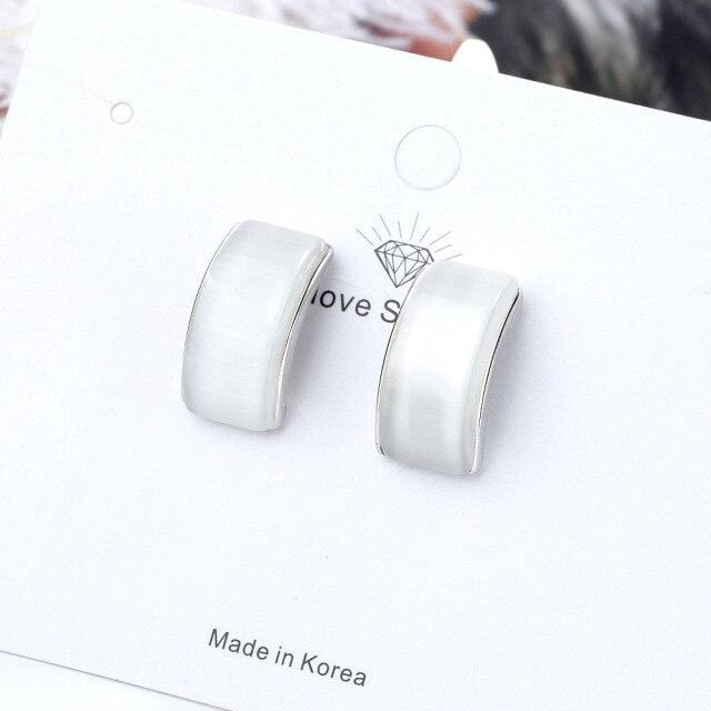 Korean Simple Geometry Arc-shaped Small Ear Stud Earring For Women Rose Gold Crystal Earrings Wedding Fashion Jewelry brincos