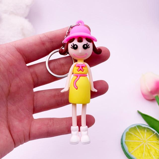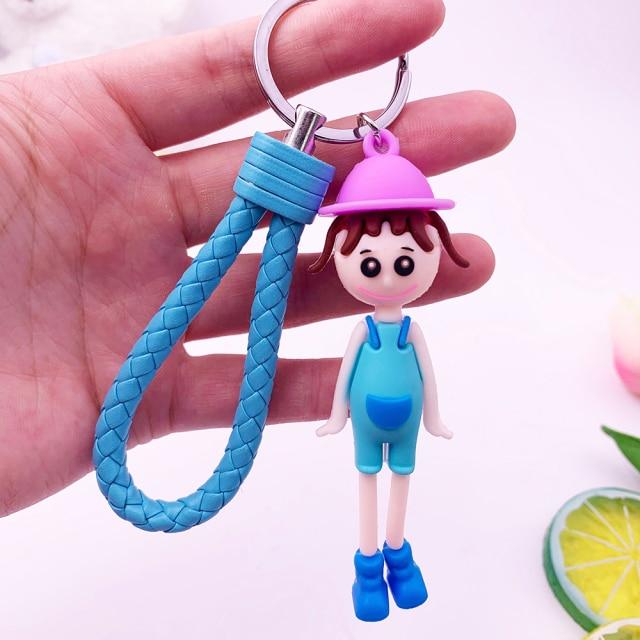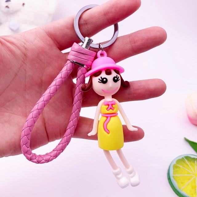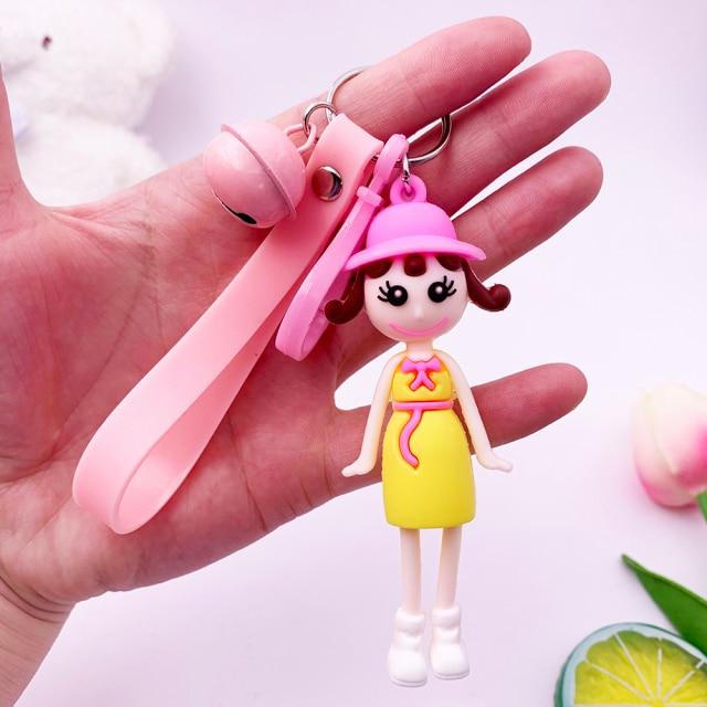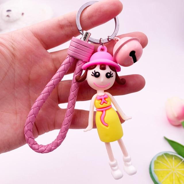 New Fashion Stereo Cute Straw Hat Girl Keychain Key ring Creative Cartoon Mobile Phone Bag Car Pendant Fun Keychain