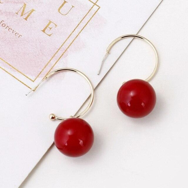 Trendy Simulation Pearl Long Earrings Female White Red Black Round Pearl Wedding Pendant Earrings Fashion Korean Jewelry Earring