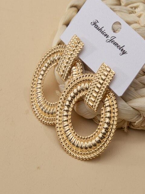 2021 Gold geometric Earrings simple disc women's metal retro Earrings long style versatile European and American Earrings