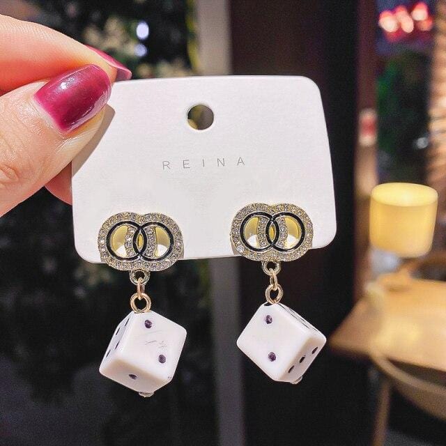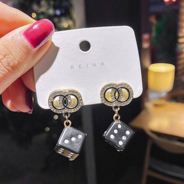 Funny 3D Dice Pendant Dangle Earrings Dangle Necklace Cool Punk Drop Earring Tassel Casino Women Men Jewelry Personality Fun