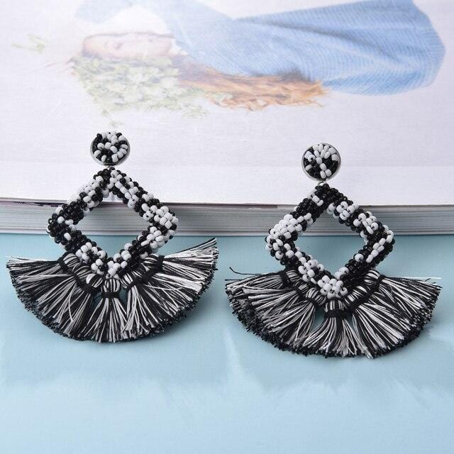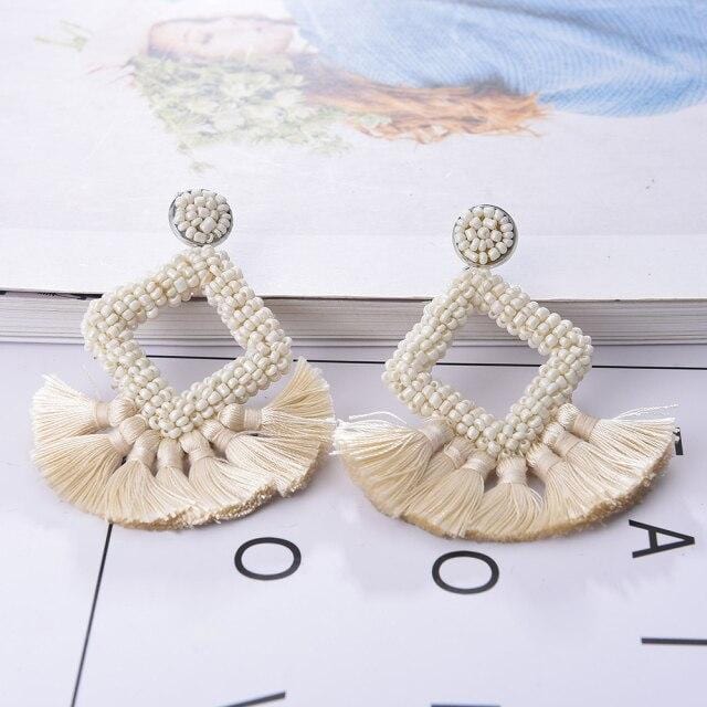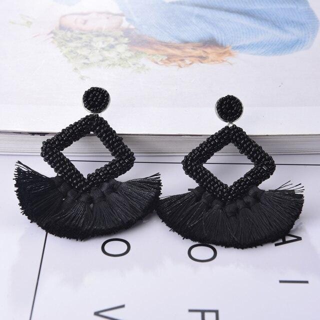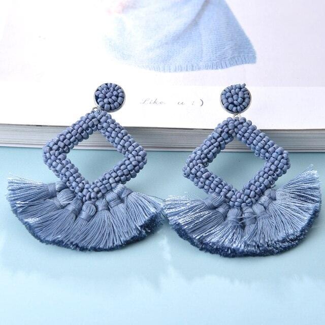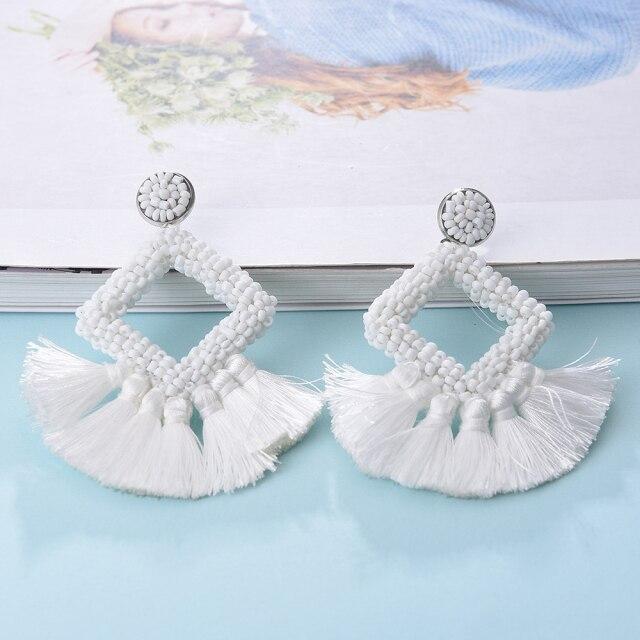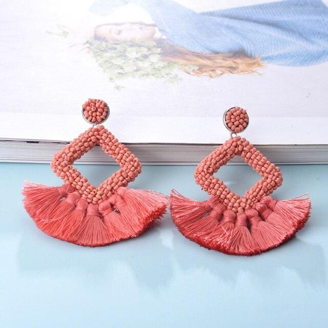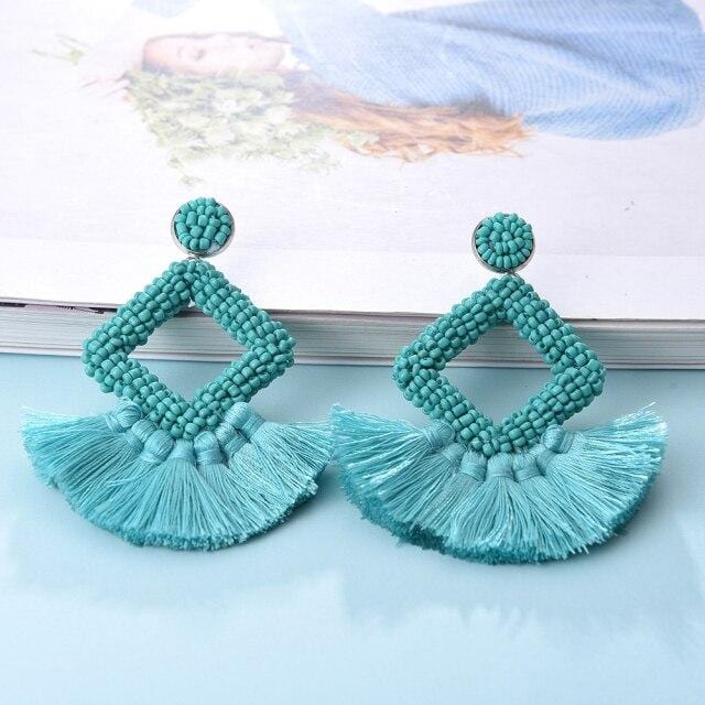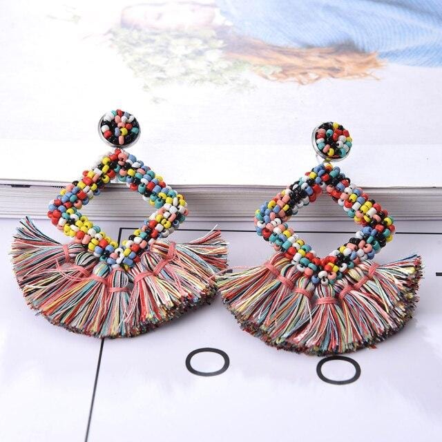 Ztech Bohemia Big Tassel Earrings For Women Girls 9 Colors Handmake Acrylic Beads Fashion Jewelry High Quality Christmas Gifts