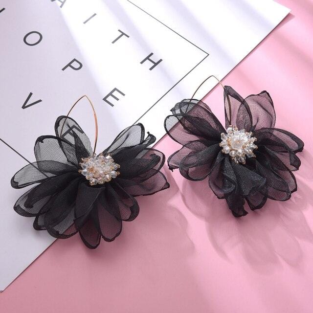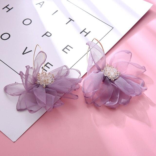 Ztech Fashion Crystal With Purple/Black/White Lace Flower Drop earrings For Women Girls Korean Long Earrings Female Jewelry