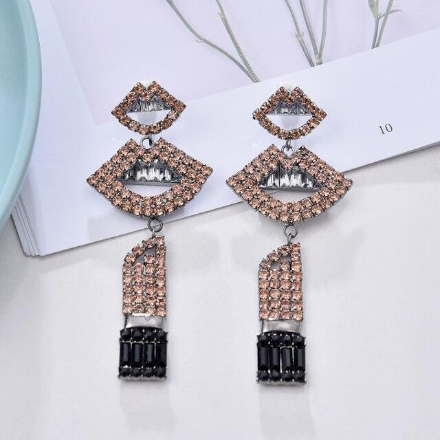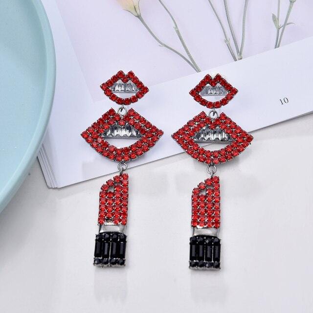Ztech New Trendy Shiny Full Crystal Red Lips Dangle Earring Korean Rhinestone Red Mouth Elegant Long Earrings For Women Pendient