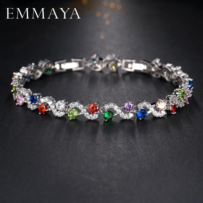 Emmaya New Design White Gold Color Women Chain Link Bracelet Lucky Flower Wedding Jewelry Multicolor CZ Stones Wholesale